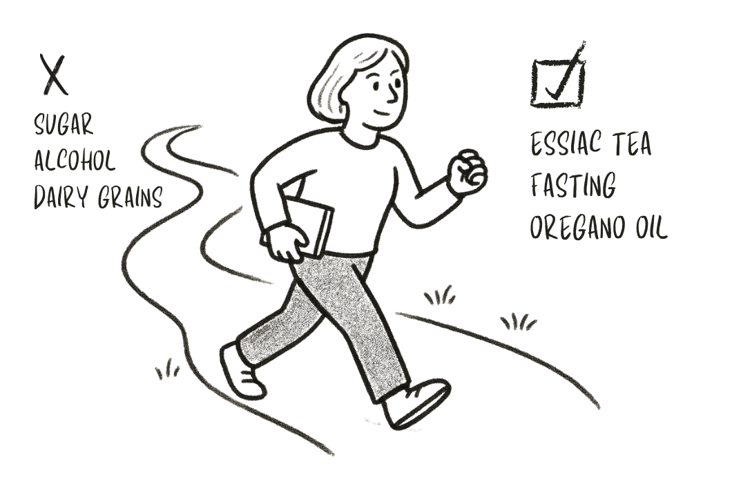 In those first three months, Anne was running on this new path. She was guided by her own research, trying things like fasting, oregano oil, and essiac tea.
